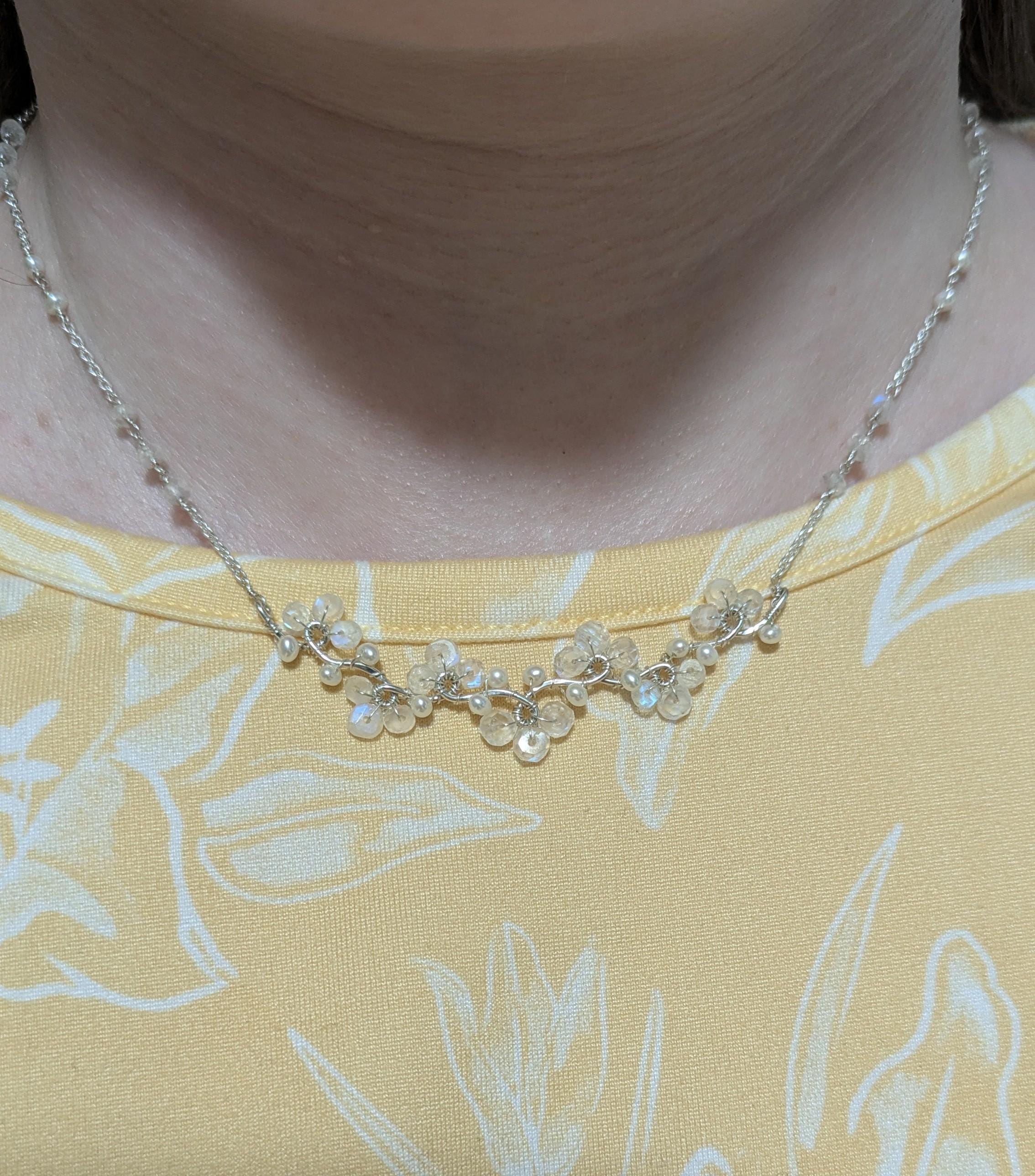 The necklace is beautiful and dainty! Lovely enough for my wedding day, but simply enough that I'll be able to wear it again afterward. I'm so excited to wear it! Thank you!