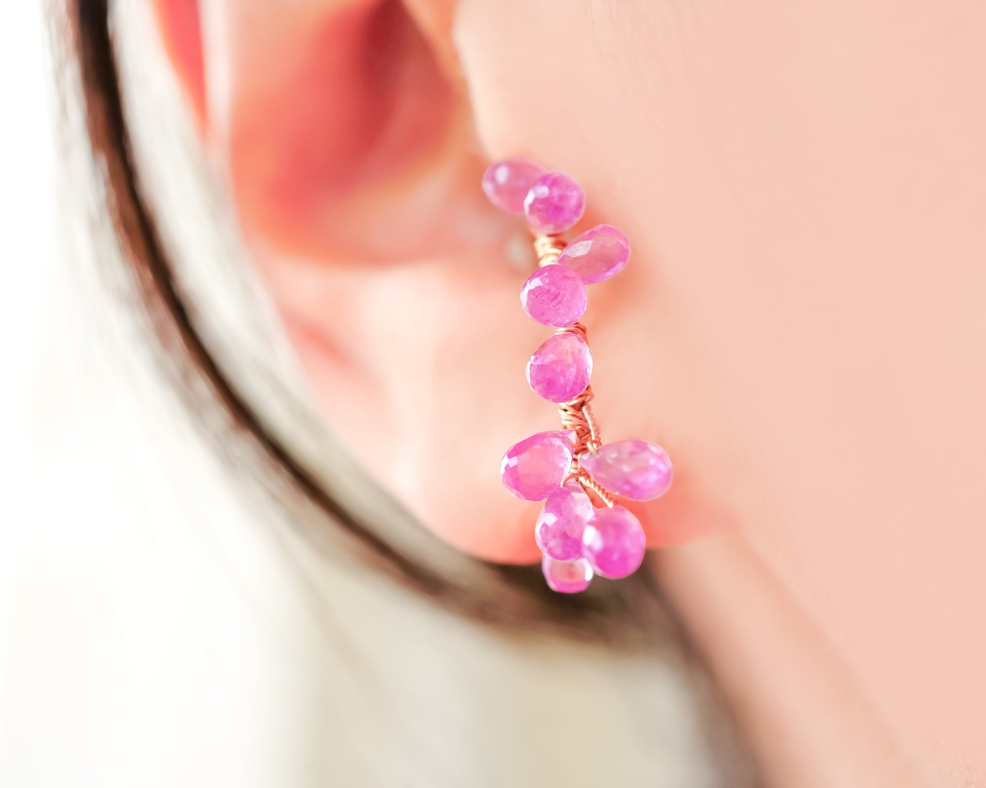 This beautiful Pink sapphire cluster ear cuff will make you shine! Precious gemstone drops in rose pink are wrapped with ear circle carefully. it will add beauty and a touch of sparkle to any outfit.